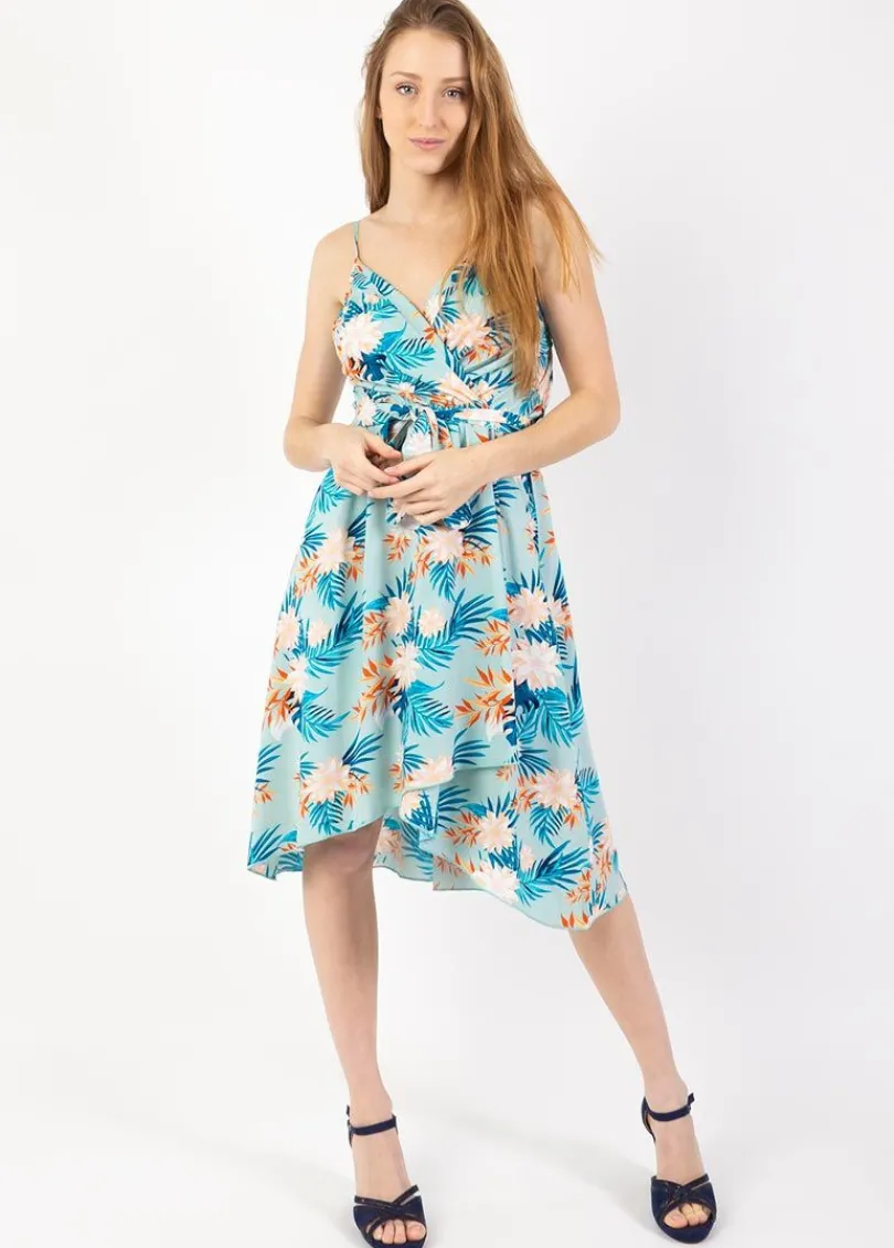 Best Coton Du Monde Robe courte chic fines bretelles cache cœur TESSA exotique vert Exotique Menthe