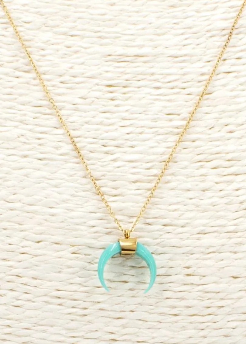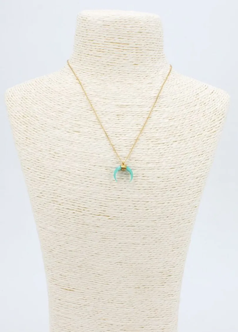 Ce collier en acier inoxydable doré et sa lune fantaisie couleur bleu nous inspirent.