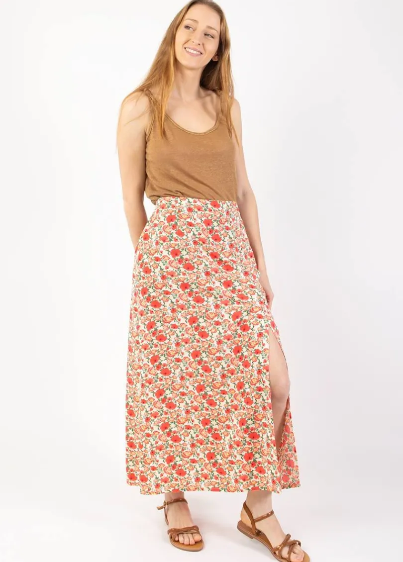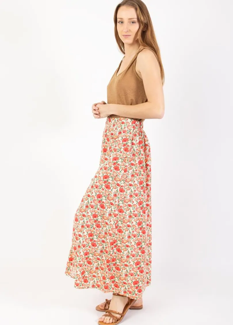 Best Sale Coton Du Monde Jupe longue fendue boutonnée LIBERTY fleurie Coquelicot