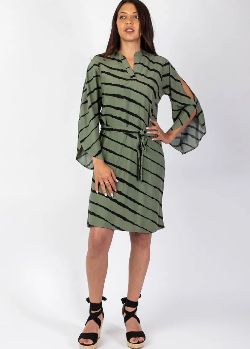 Best Sale Coton Du Monde Robe courte manches fendues PAULA tie and dye kaki New Tie&Dye Kaki