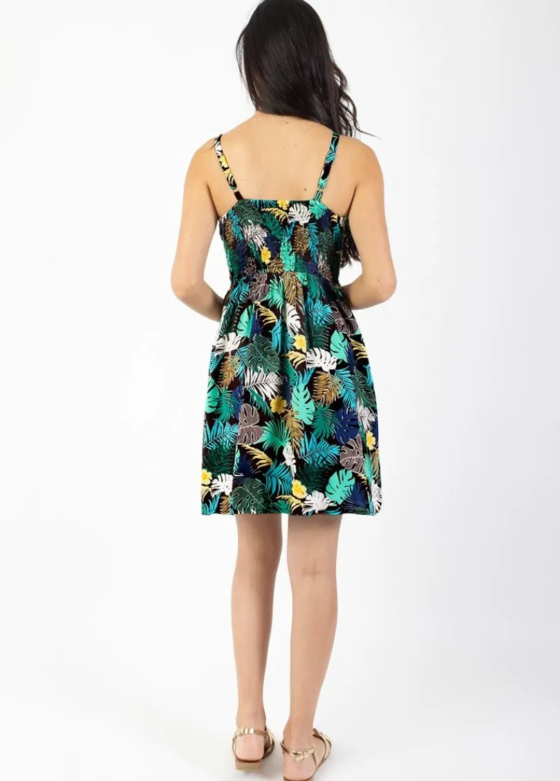 Best Sale Coton Du Monde Robe évasée fines bretelles MOREA imprimé tropical vert Palme Vert