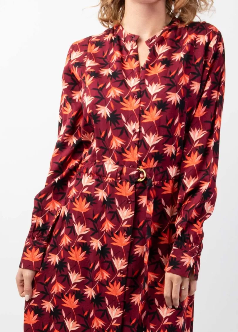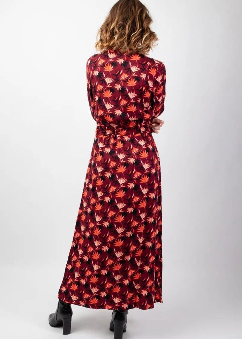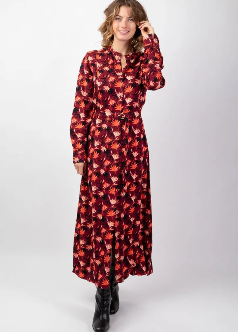 Best Sale Coton Du Monde Robe longue chemise hiver motif fleuri LINA bordeaux Colchique