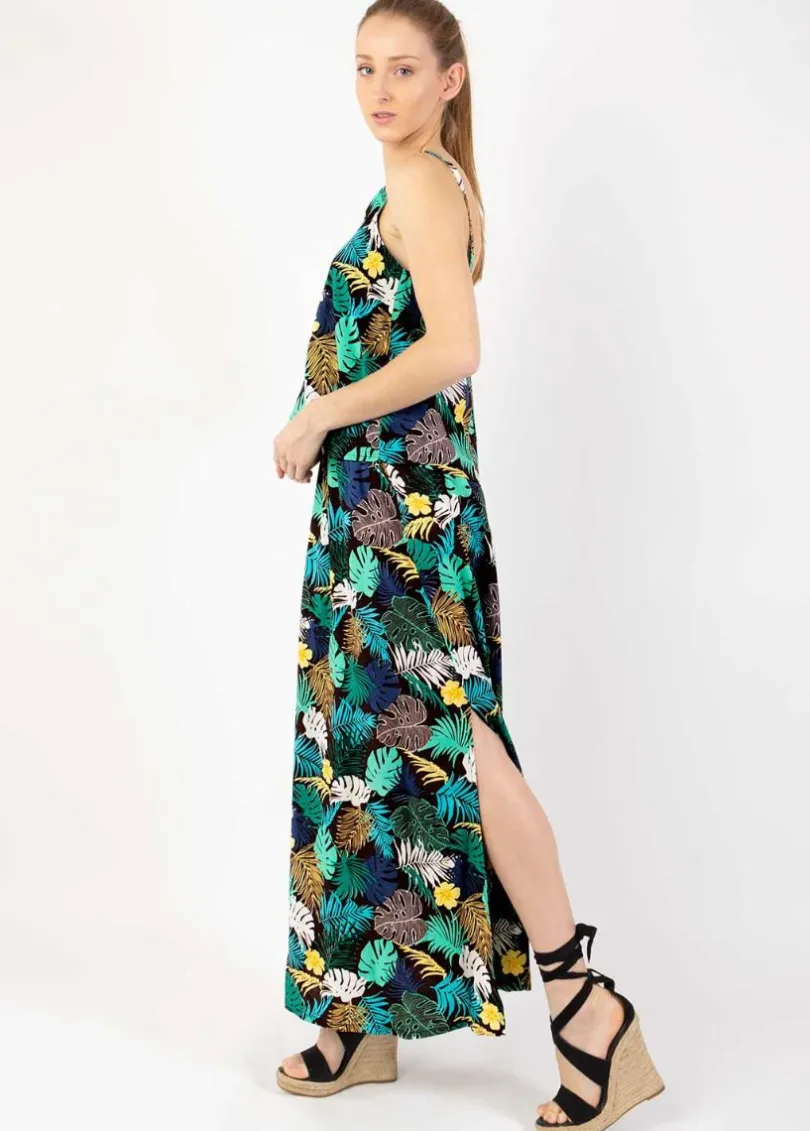 Best Sale Coton Du Monde Robe longue fendue ASSILIA imprimé tropical Palme Vert