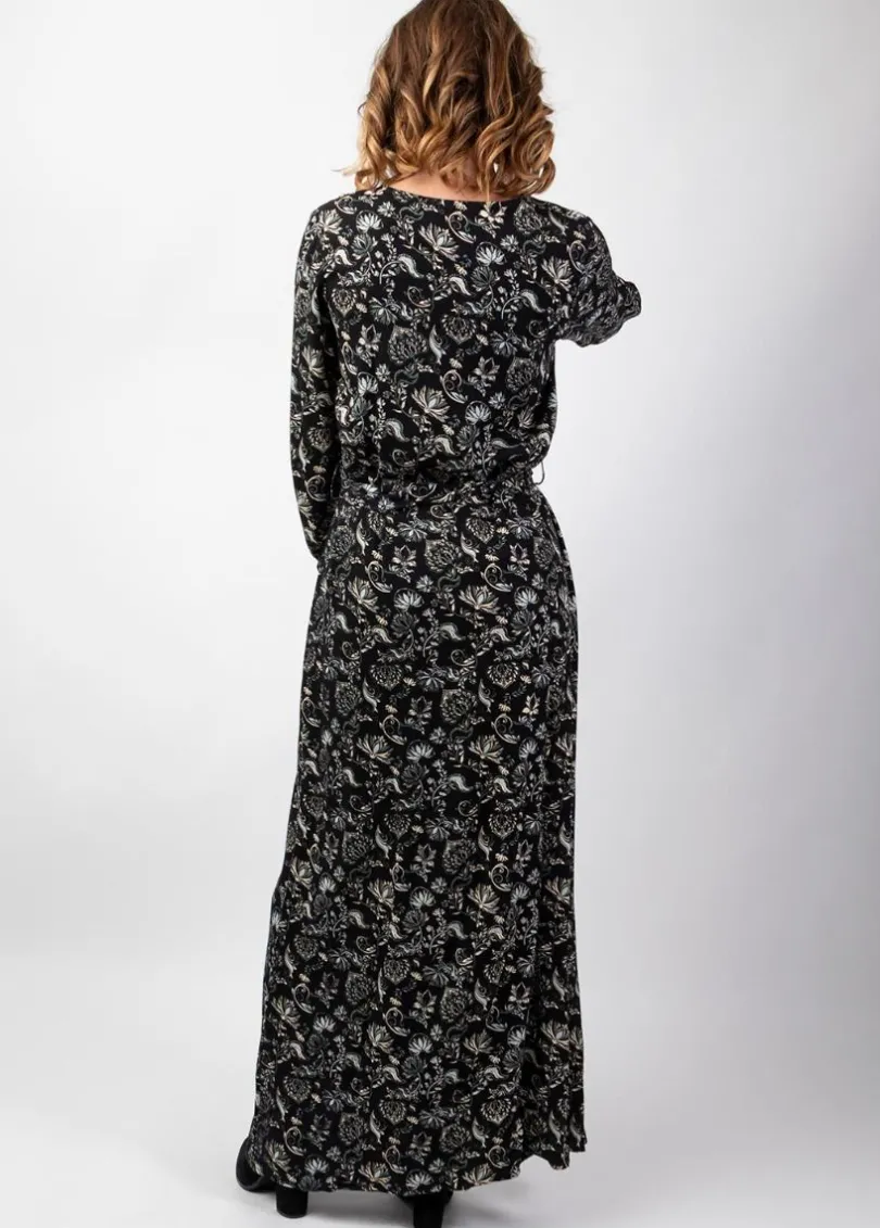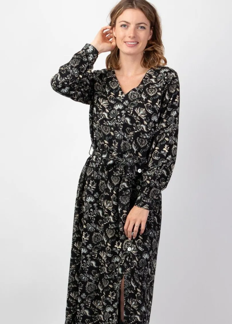 Best Sale Coton Du Monde Robe longue hiver en twill de viscose GAYA motif ethnique noir Orient
