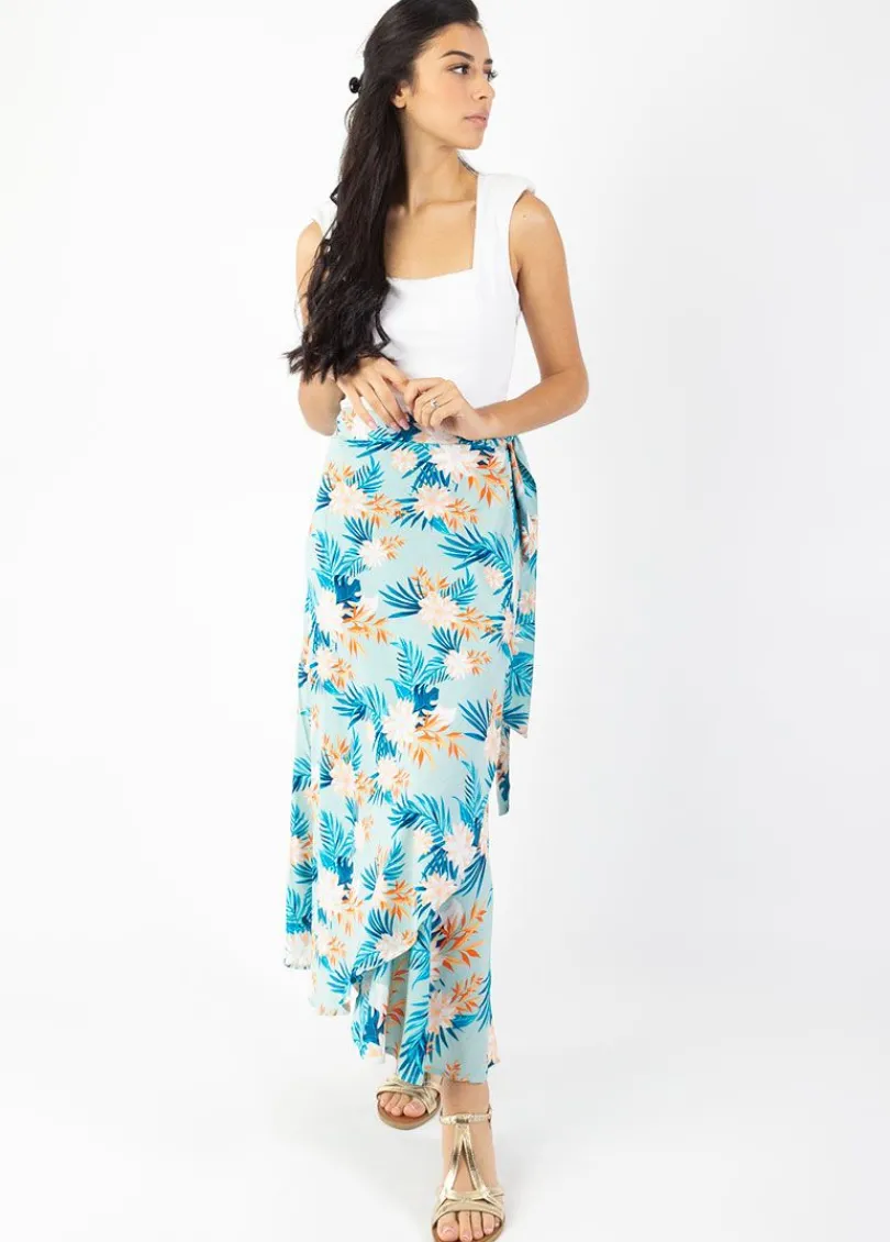 Facile à porter avec un de nos tops unis en coton, la jupe longue Levy aux motifs floraux exotiques colorés donnent de la fraicheur à votre tenue.