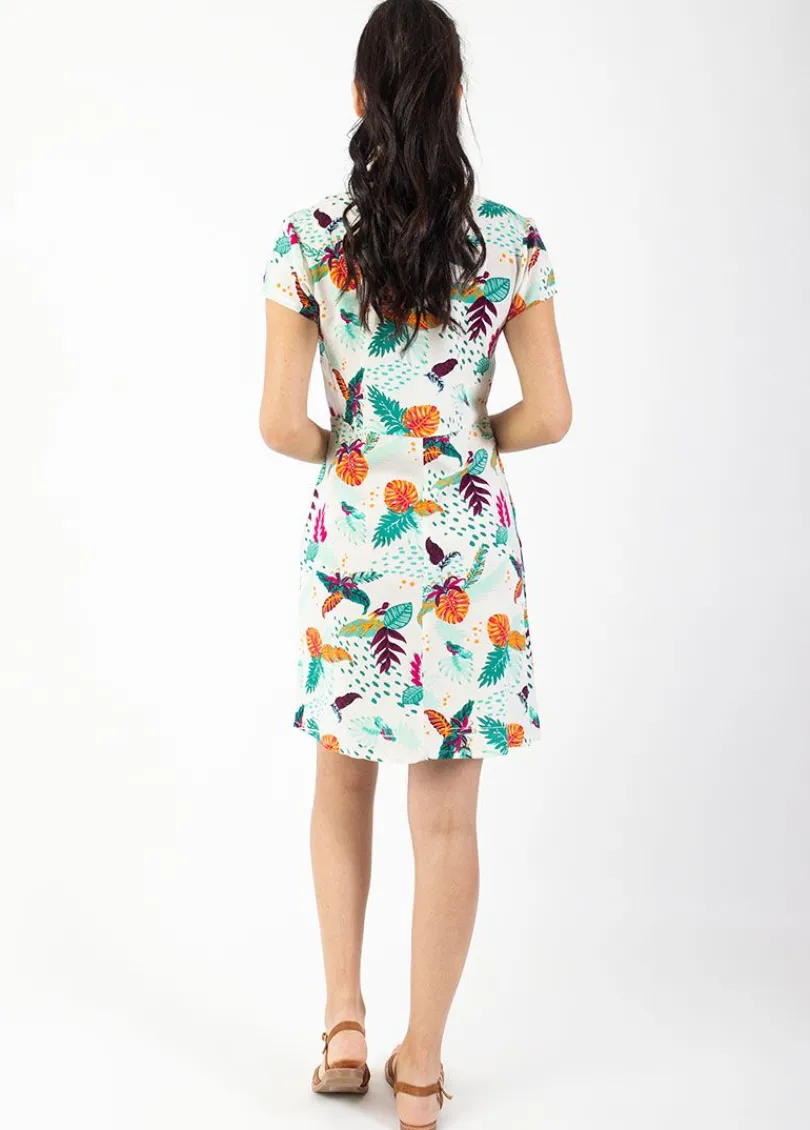 Cheap Coton Du Monde Robe courte effet cache cœur AMANDA imprimé tropical blanc Rio Blanc