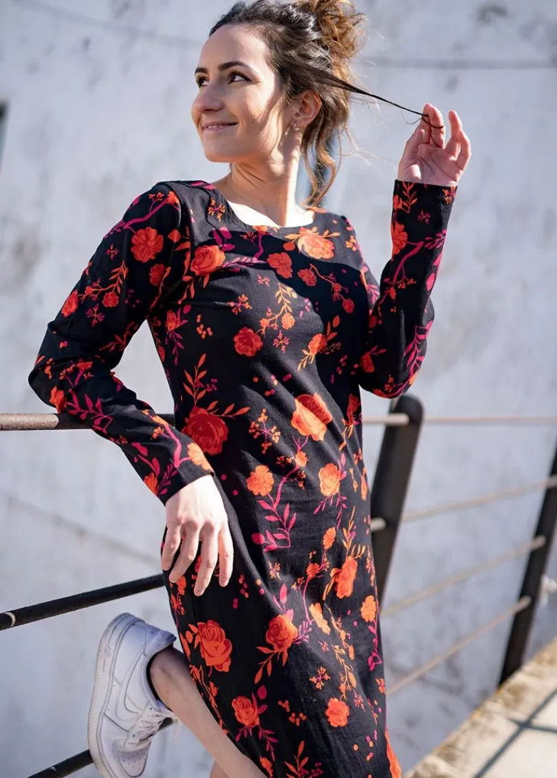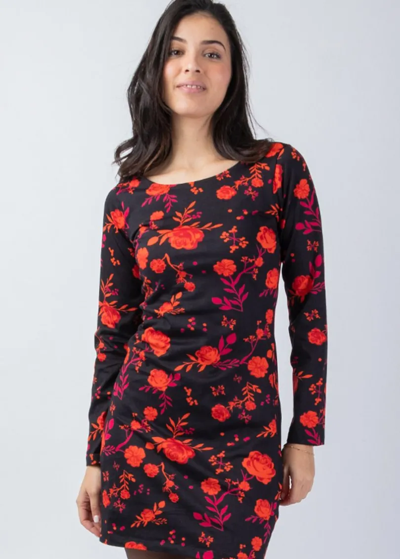 Cette robe manches longues en 100% coton ravira beaucoup d’entre-vous par son motif fleuri magnifique. Cette robe courte pourra être portée quotidiennement, mais aussi pour une soirée festive. Très élégante avec sa coupe droite et son encolure ronde, la robe Kalika s’associera parfaitement avec des bottines et un manteau pour un look casual chic.