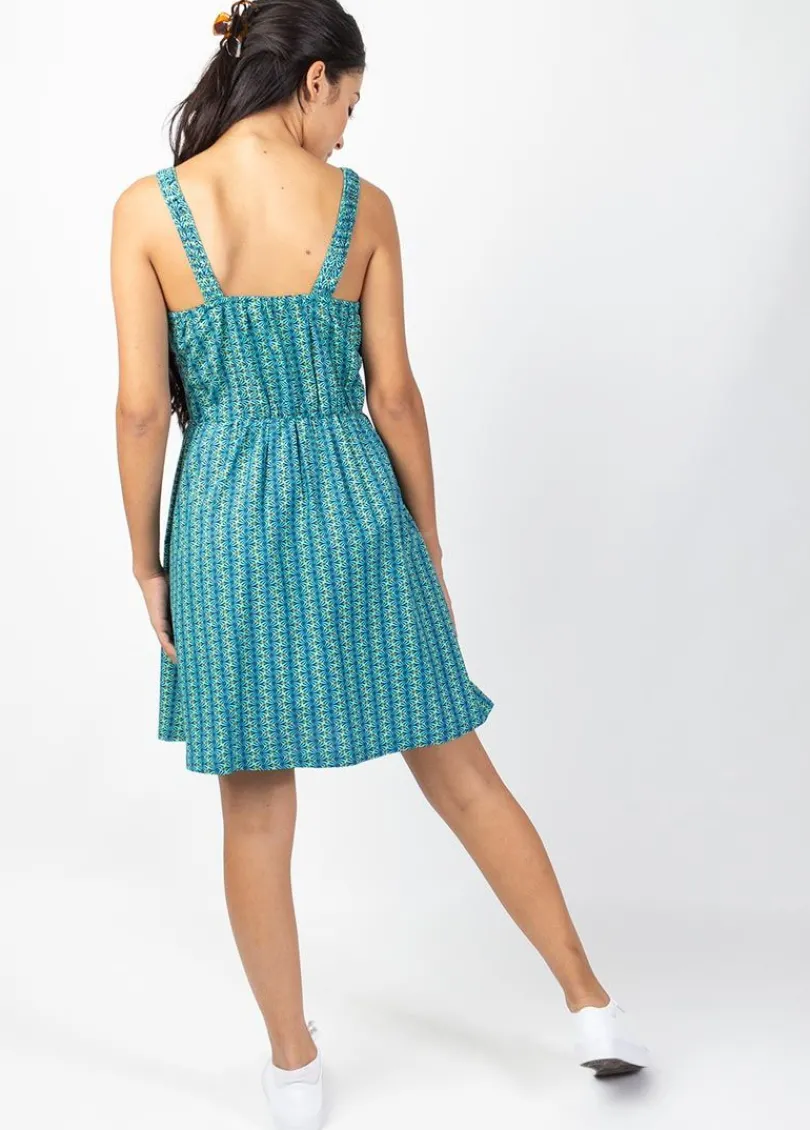 Facile à porter, cette jolie petite robe courte à bretelles et à la forme trapèze s’invitera tout le long de la saison estivale. On aime l’ imprimé ethnique couleur vert turquoise qui sublime cette robe courte. La coupe simple et féminine se portera facilement à tout moment de la journée.