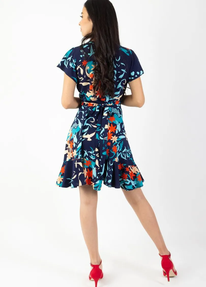 Cheap Coton Du Monde Robe courte MARIKA fluide cache-cœur imprimé japonisant Japan