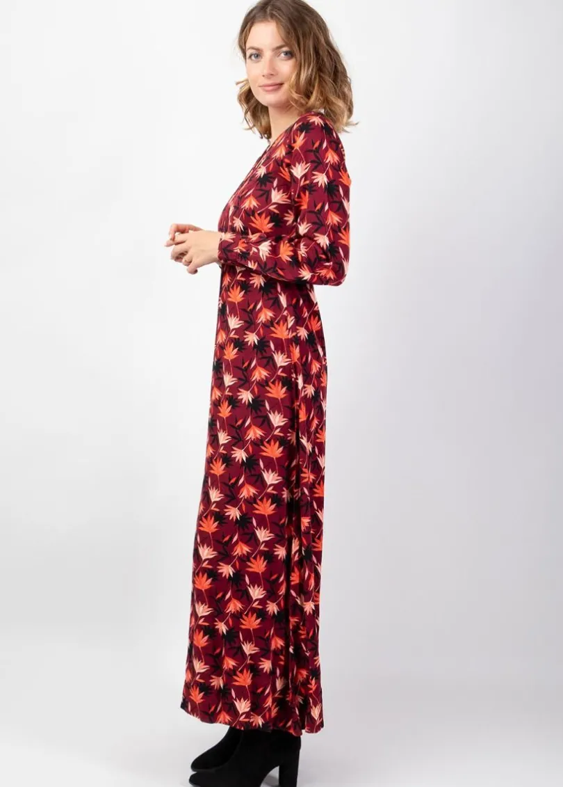 Cheap Coton Du Monde Robe longue fendue en viscose soyeux hiver CALISSA motif bohème Colchique