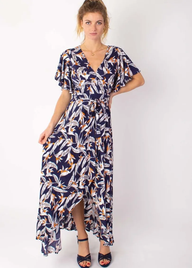 Cheap Coton Du Monde Robe longue SAKURA bohème imprimé fleurs de paradis 14 Marine