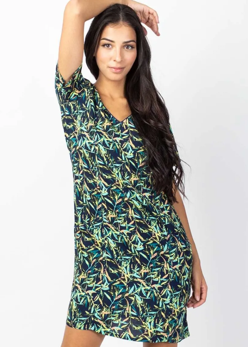 Cheap Coton Du Monde Robe manches courtes en coton CLAUDIA imprimé tropical Toscane