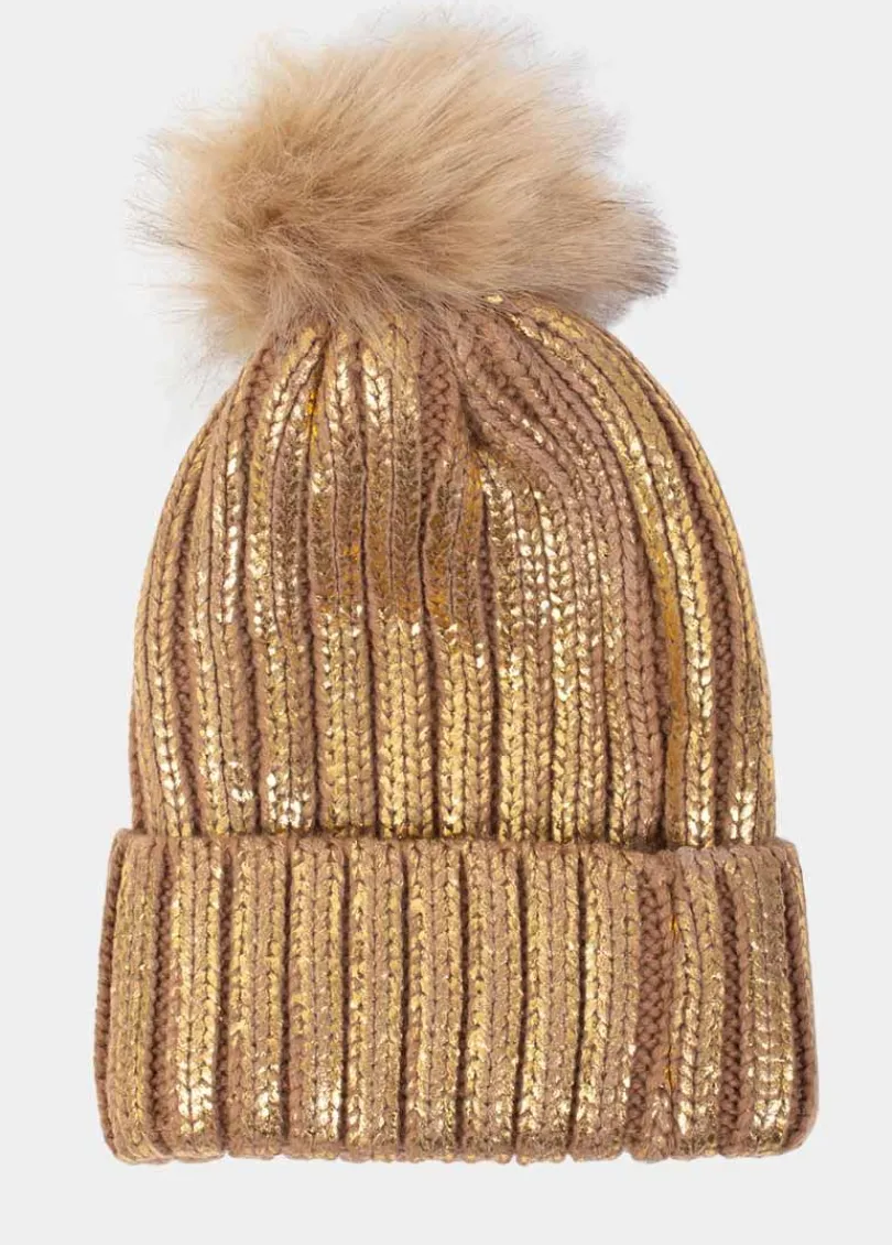 Clearance Coton Du Monde Bonnet Pompon Shine Camel Métallisé