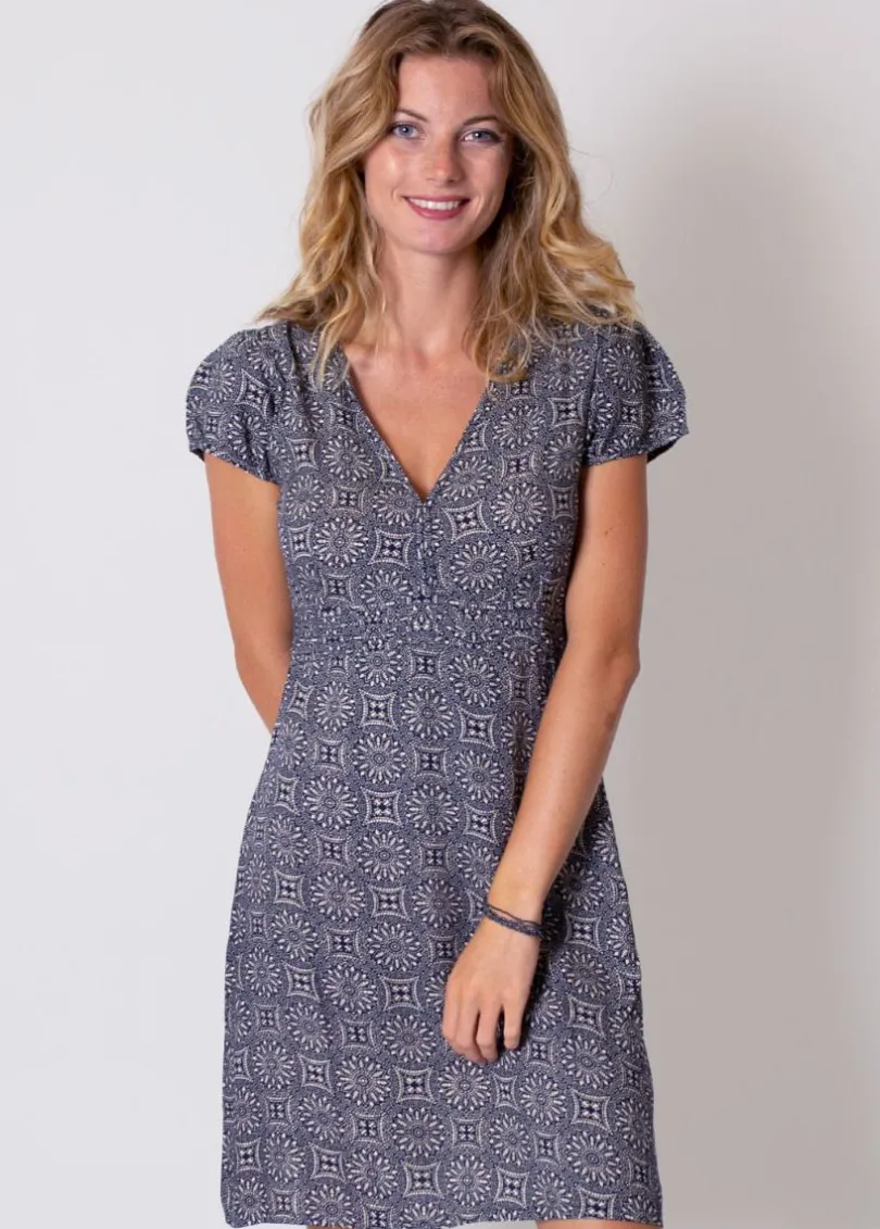 Clearance Coton Du Monde Robe courte cintrée TANIA imprimé ethnique 32 Marine