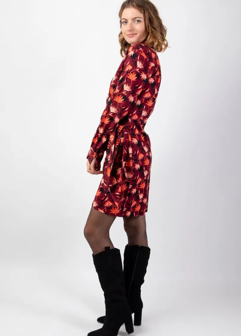 Fashion Coton Du Monde Robe courte hiver manches longues RIANA coupe portefeuille Colchique