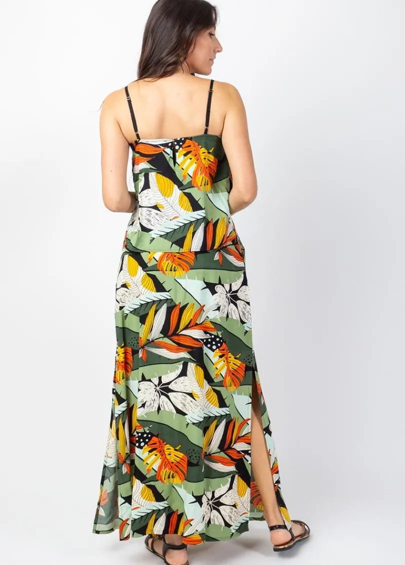 Fashion Coton Du Monde Robe longue fendue ASSILIA imprimé exotique vert Brésil