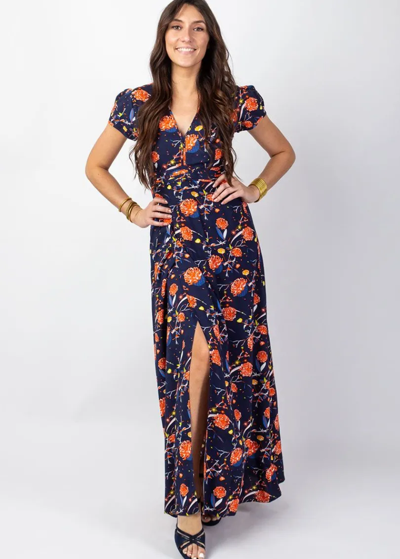 Flash Sale Coton Du Monde Robe longue fluide MARBELLA imprimé fleuri marine Hanami