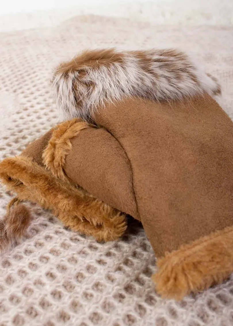 Hot Coton Du Monde Mitaines Fourrure Taupe