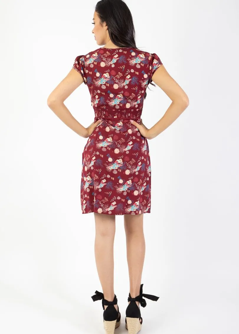 Hot Coton Du Monde Robe courte cintrée TANIA imprimé paon Narcisse