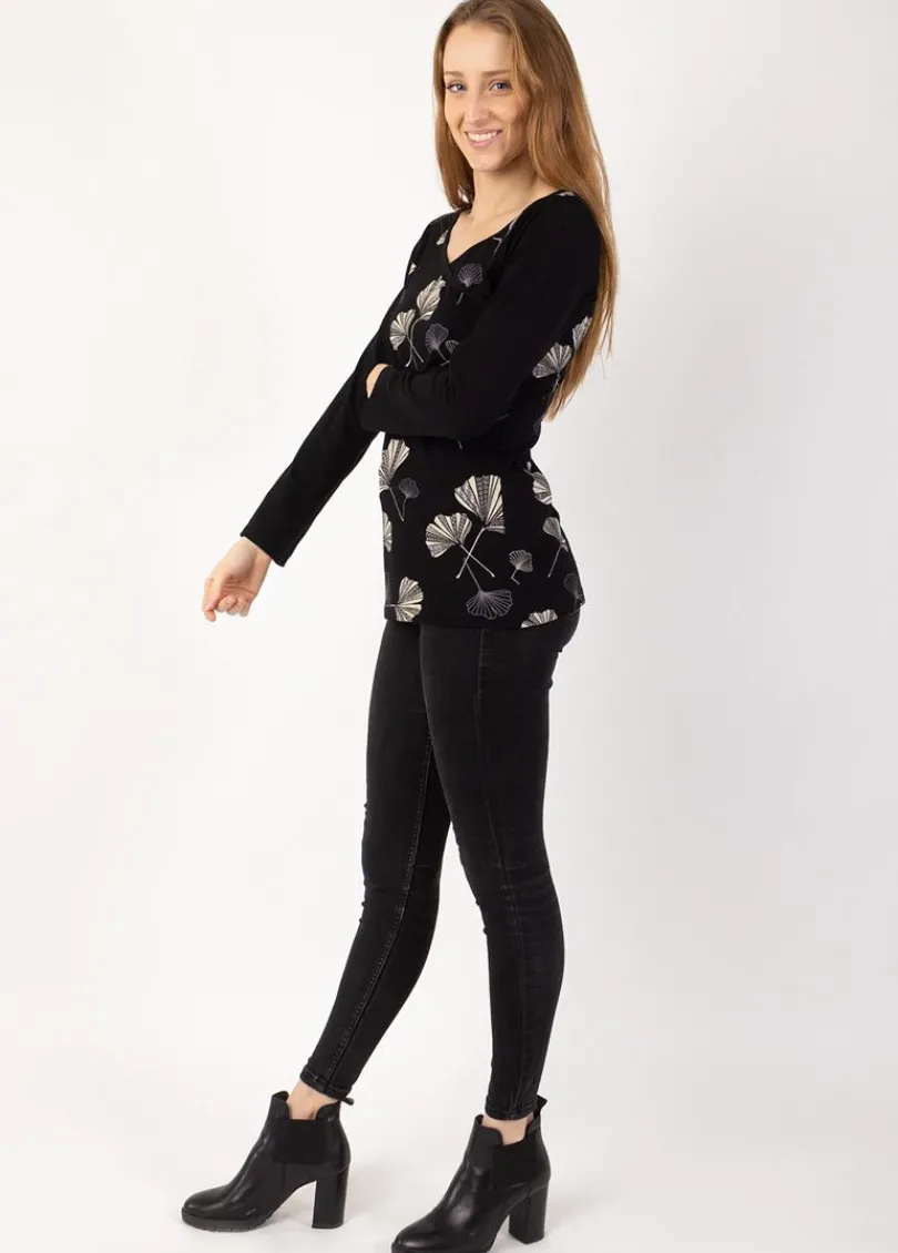 Hot Coton Du Monde Top manches longues en coton KARAN imprimé Ginkgo