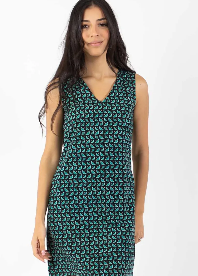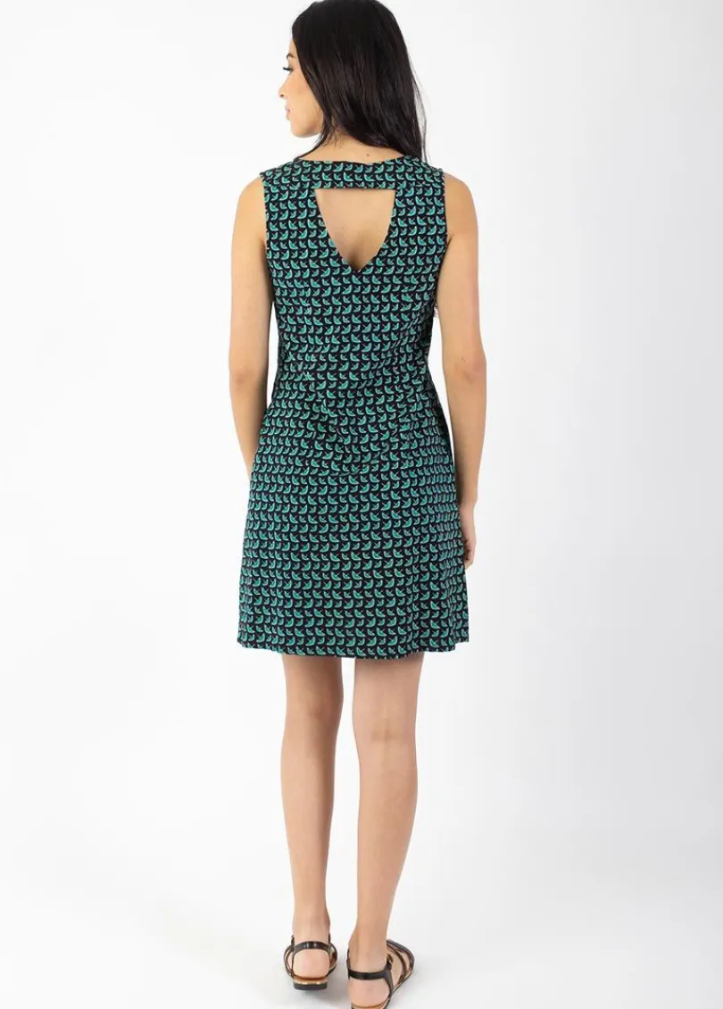 New Coton Du Monde Robe courte légère sans manche LIZENA imprimé ethnique vert Envolee Bleu