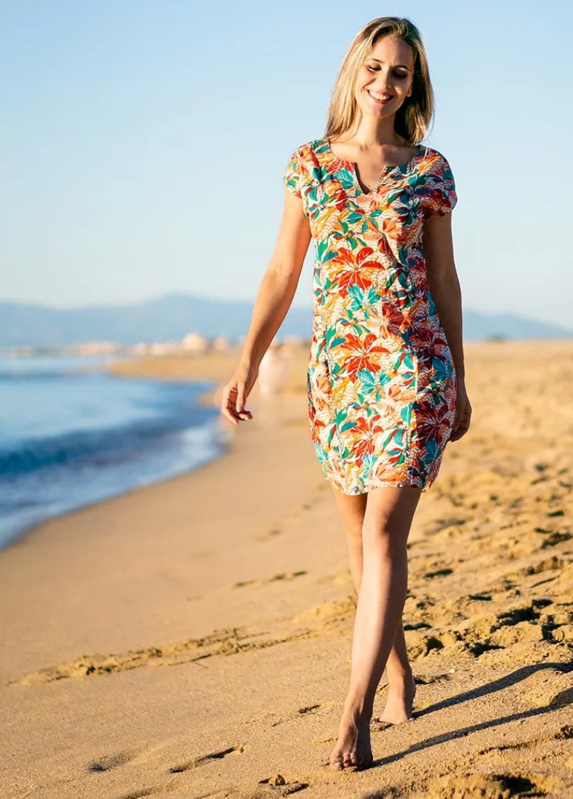 New Coton Du Monde Robe légère en coton manches courtes ERIKA imprimé fleuri Congo
