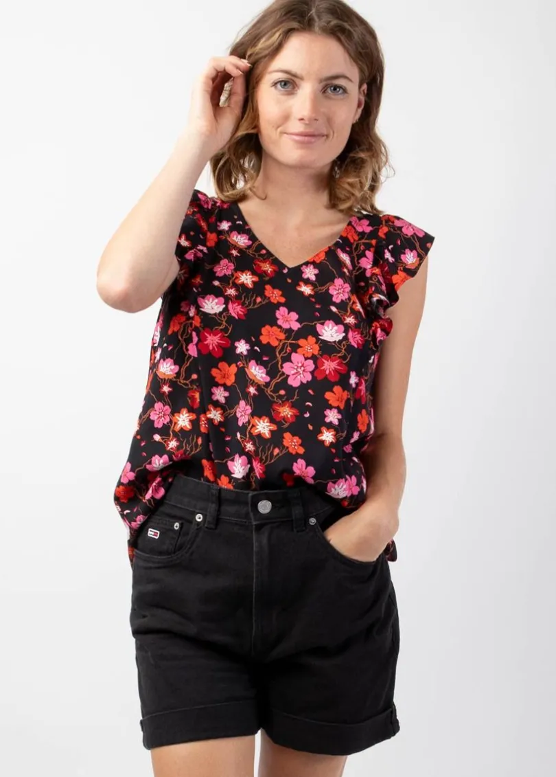 New Coton Du Monde Top femme tendance style bohème CHLOE imprimé petites fleurs Cherry Noir