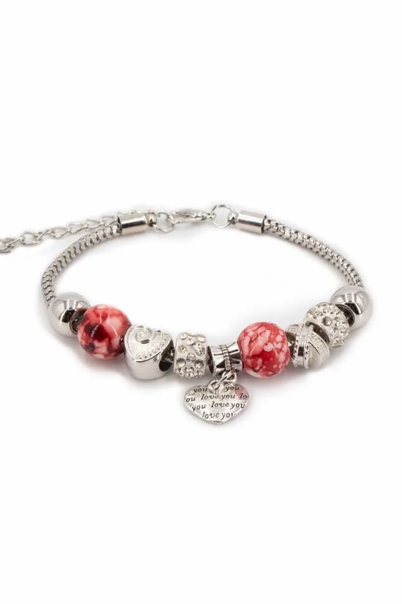 Romantique, ce bracelet fantaisie breloques en perles rouges est une ôde à l’amour.