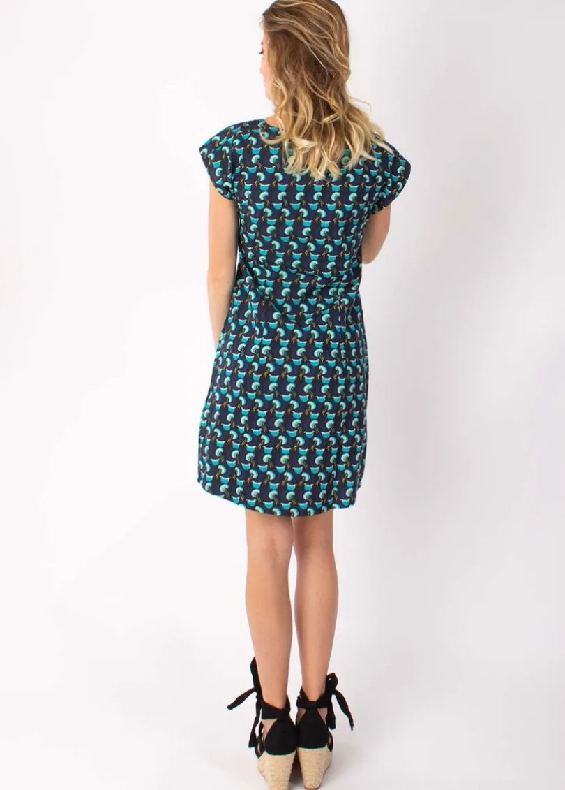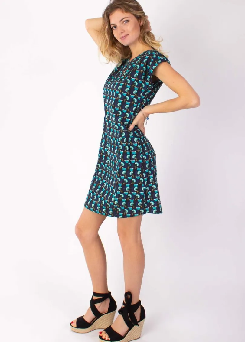 Online Coton Du Monde Robe légère en coton manches courtes ERIKA imprimé ethnique bleu 13 Bleu