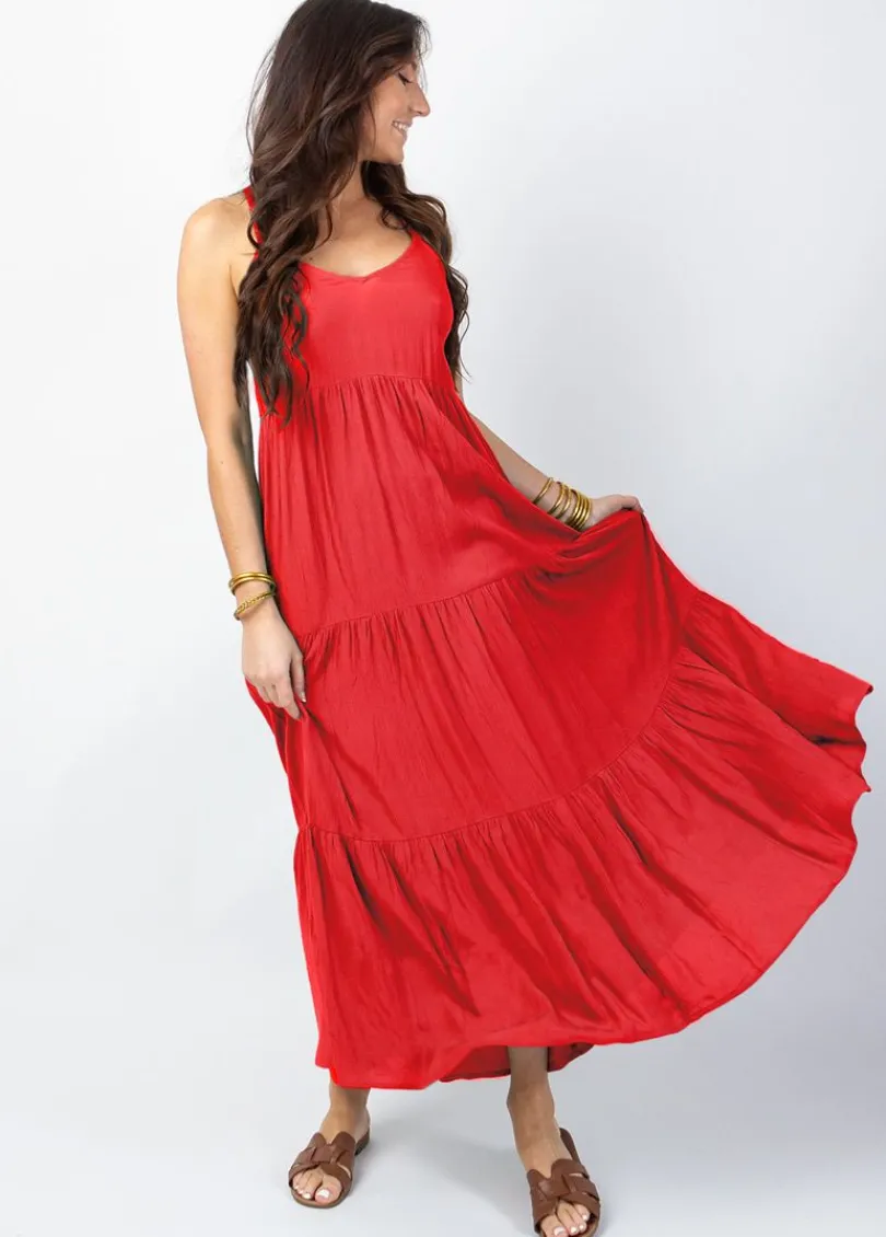 Le tissu léger de cette robe longue de plage rouge vous conviendra au quotidien.