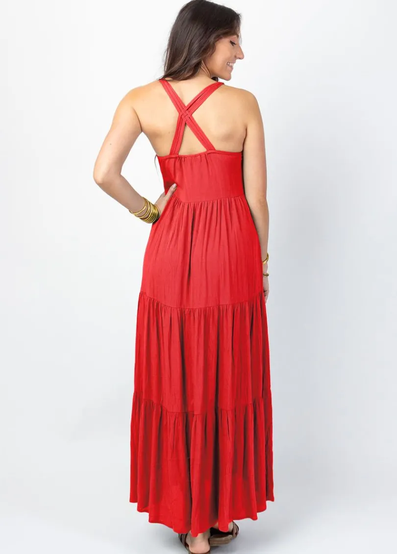 Online Coton Du Monde Robe longue unie fines bretelles torsadées MONICA Rouge