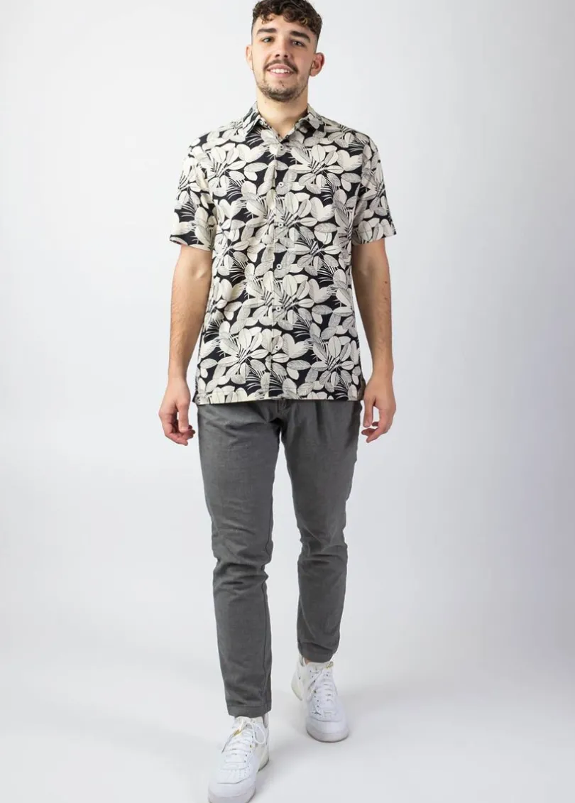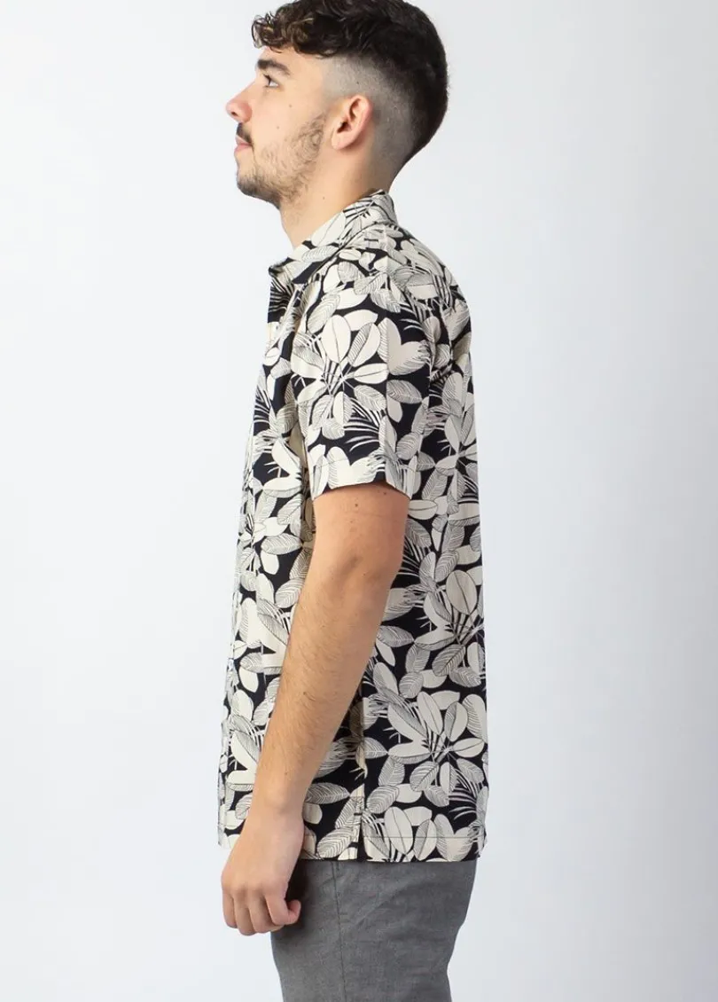 Adoptez cette chemise à manches courtes au style décontracté et facile à porter. On aime l’imprimé jungle sur fond noir ainsi que la coupe droite légèrement ample de cette chemise homme.