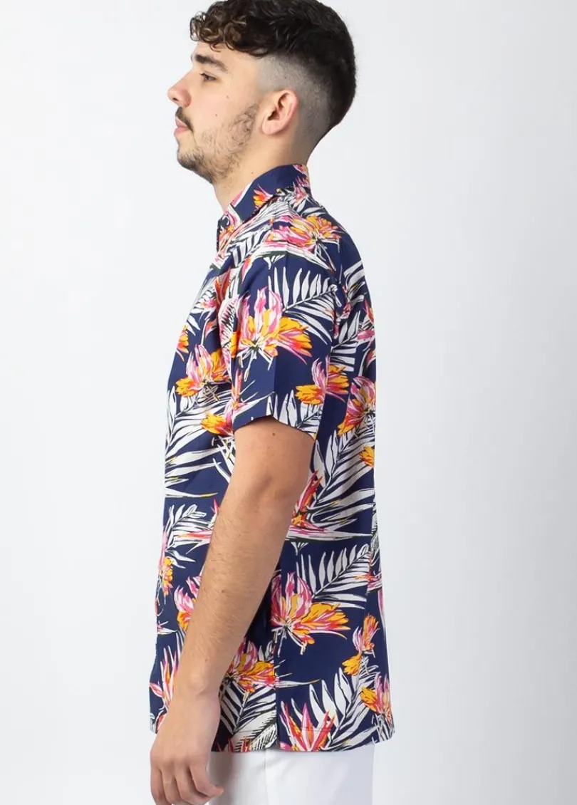 Vous aimerez cette chemise à manches courtes au joli motif fleuri style Hawaien. Très décontracté et facile à porter la chemise Lorenzo habille l’homme avec dynamisme et luminosité.