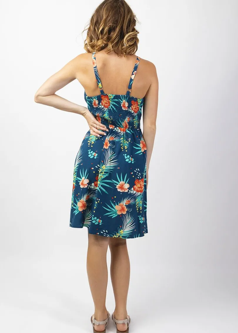 Outlet Coton Du Monde Robe femme casual chic MOREA imprimé fleurs chatoyant Maui