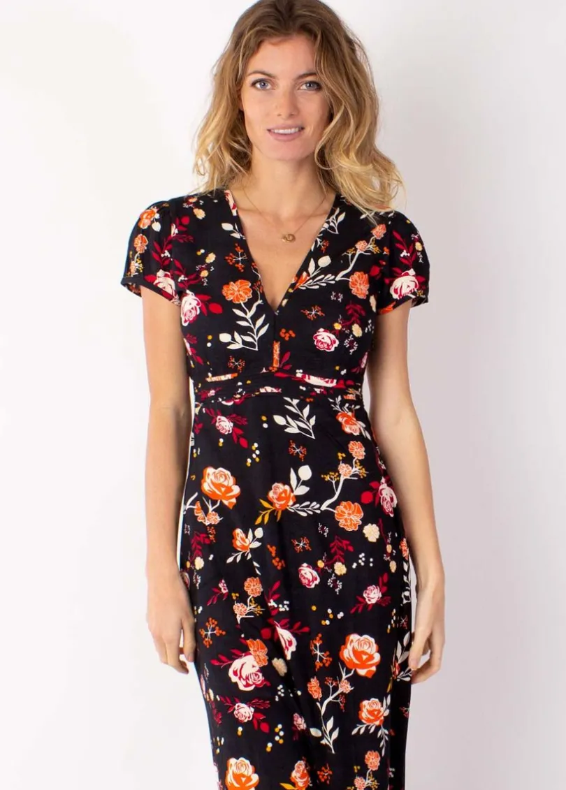 Outlet Coton Du Monde Robe longue fluide MARBELLA imprimé fleuri noir 28 Noir
