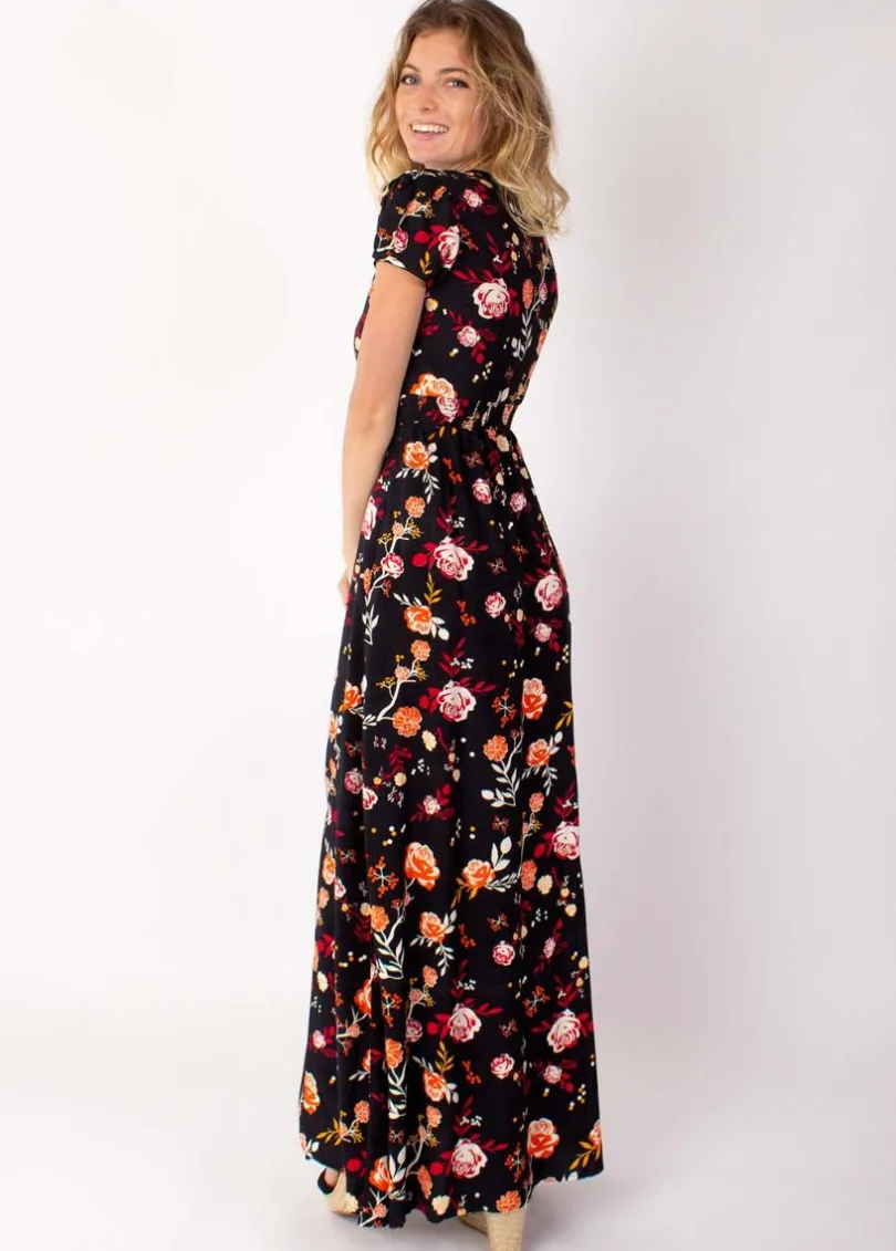 Idéale pour un évènement ou une soirée habillée, cette robe légère au motif floral coloré chic et élégant vous donnera une allure glamour et féminine.