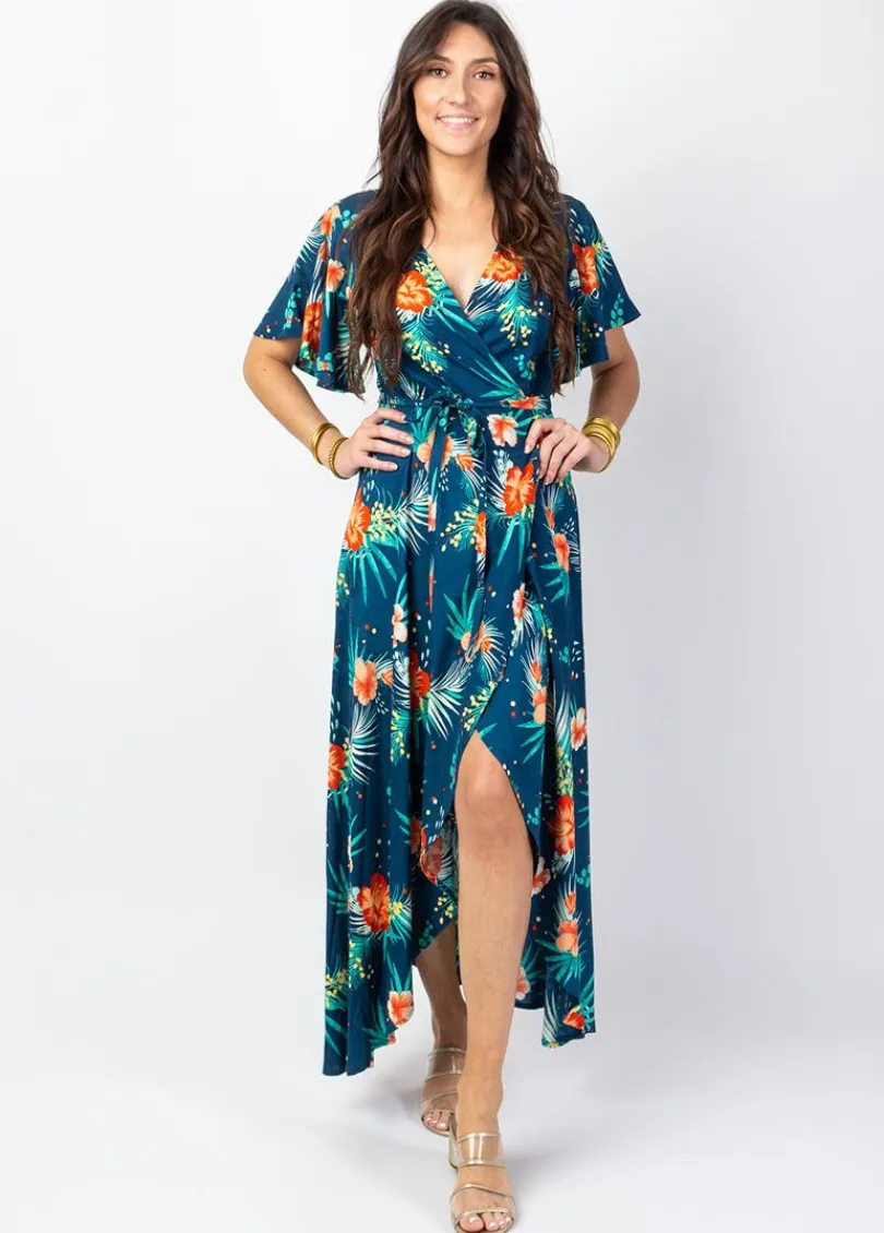 Outlet Coton Du Monde Robe longue SAKURA bohème imprimé fleurs tropicales Maui
