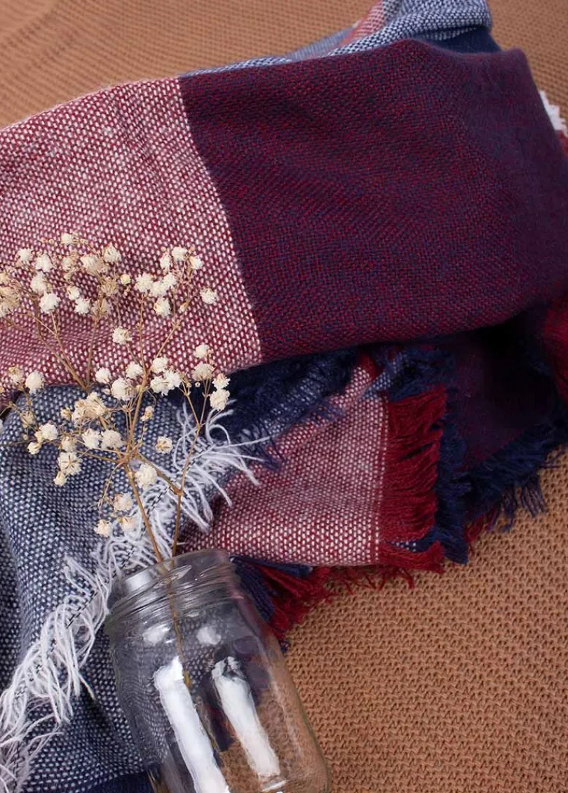 Sale Coton Du Monde Echarpe à carreaux Carreaux Rouge/Bleu