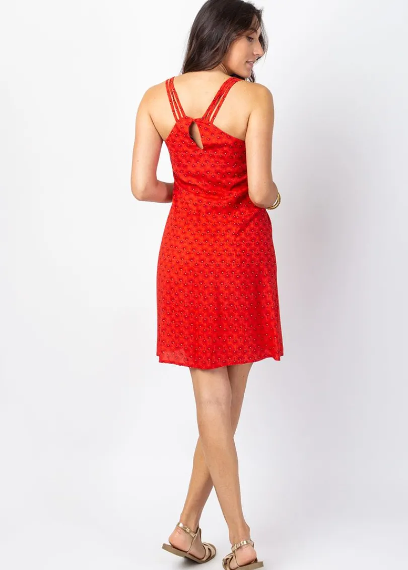 Sale Coton Du Monde Robe courte de plage dos nageur ALOHA imprimé orange Albizia Mandarine