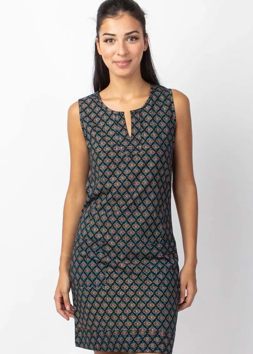 Shop Coton Du Monde Robe courte en coton MARLA sans manches imprimé ethnique noir Aztec