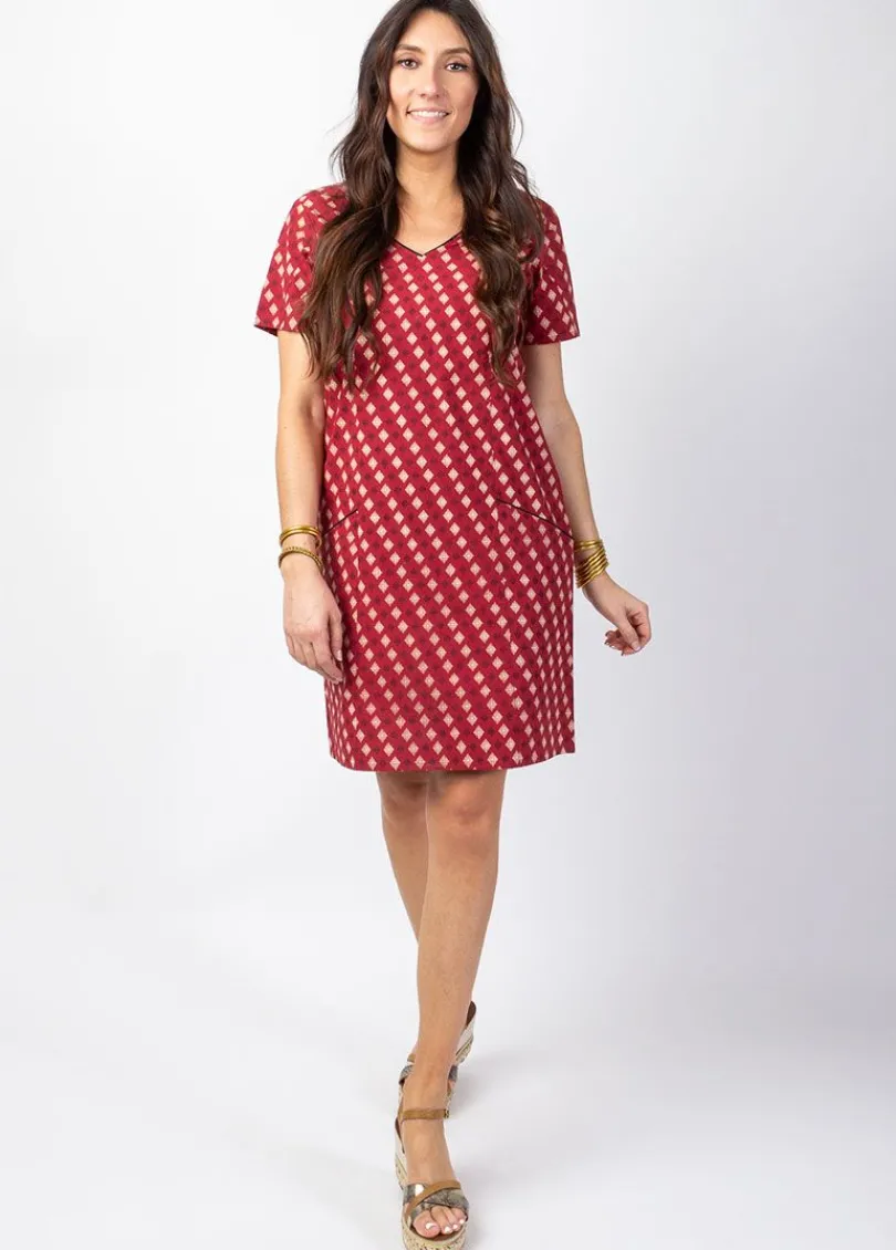 Shop Coton Du Monde Robe manches courtes en coton CLAUDIA motifs ethniques bordeaux Medina