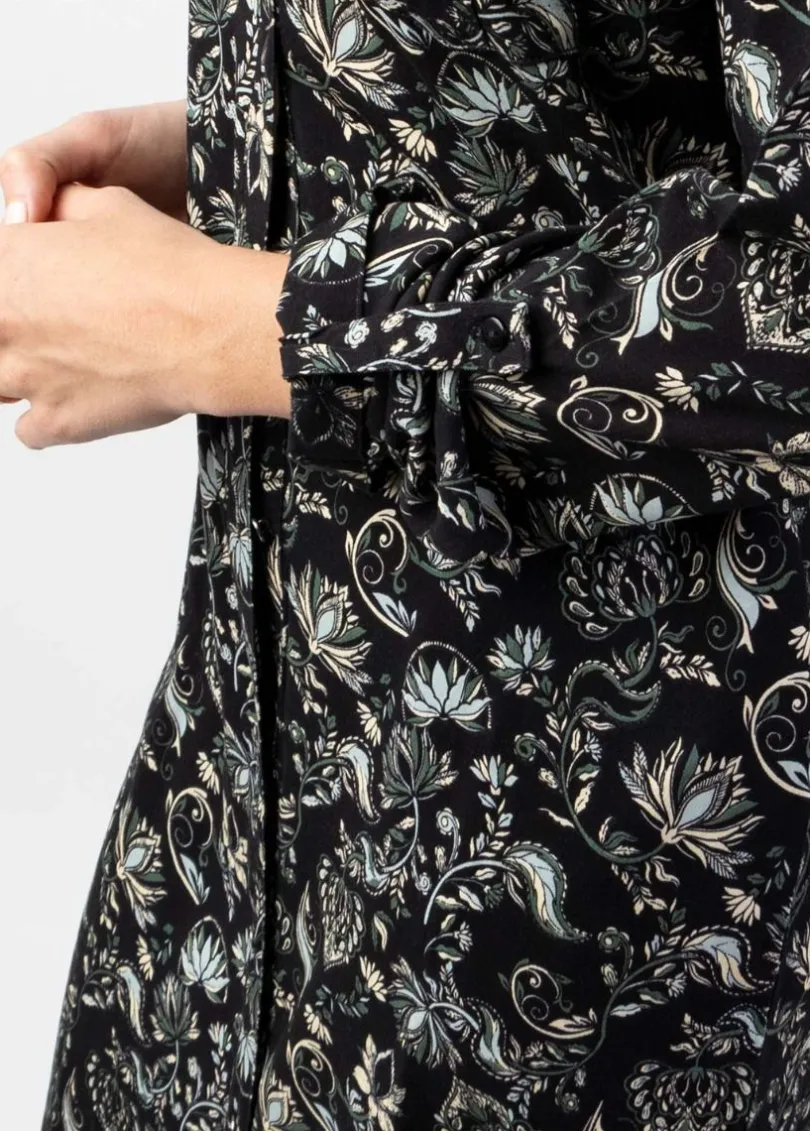Shop Coton Du Monde Robe midi hiver manches longues MACHA motif ethnique noir Orient