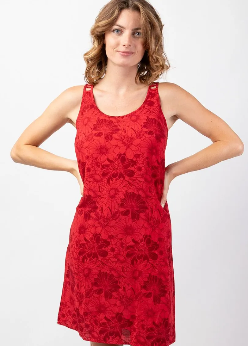 Store Coton Du Monde Robe courte casual chic SYLVIA imprimé floral rouge Rumba