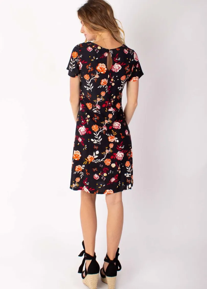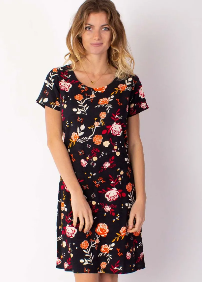 Store Coton Du Monde Robe courte fluide NATALIA manches courtes imprimé fleuri noir 28 Noir