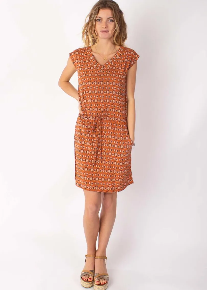 Store Coton Du Monde Robe fluide avec lien ajustable ELVIRA imprimé ethnique camel 29 Camel