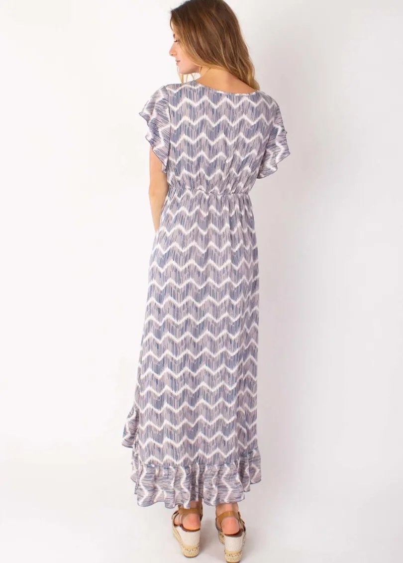 Store Coton Du Monde Robe longue à volants KENDRA imprimé tie and dye taupe Tie&Dye Taupe