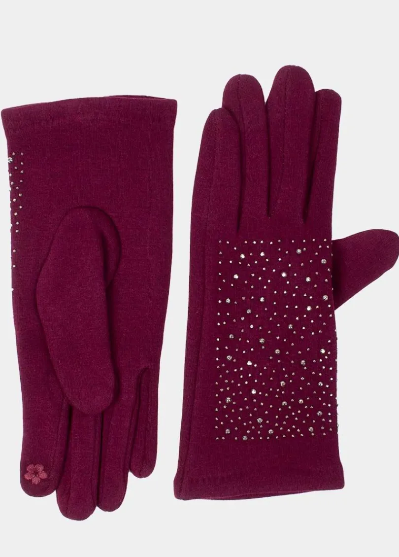 Ces gants unis bordeaux ornés de petits strass ne vous quitteront plus et qui garderont vos mains bien au chaud cet hiver.