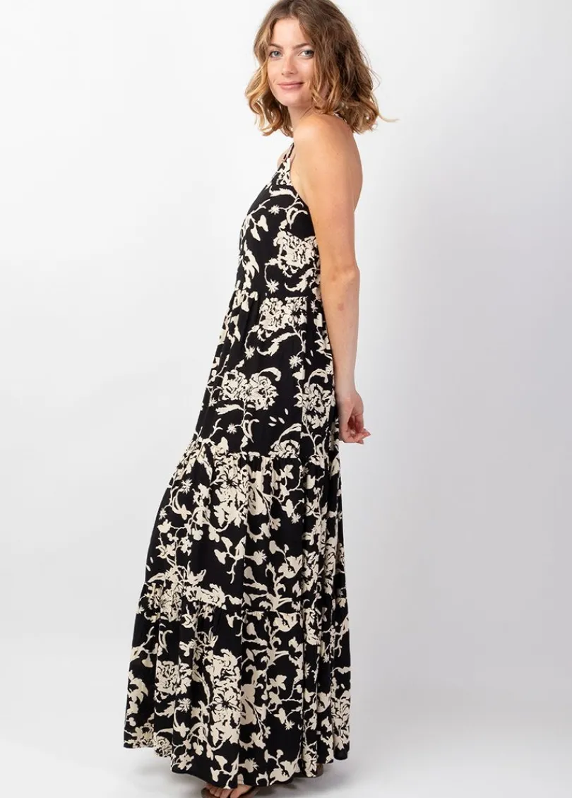 Le tissu léger de cette robe longue de plage à l’imprimé ethnique sur fond noir vous conviendra au quotidien.