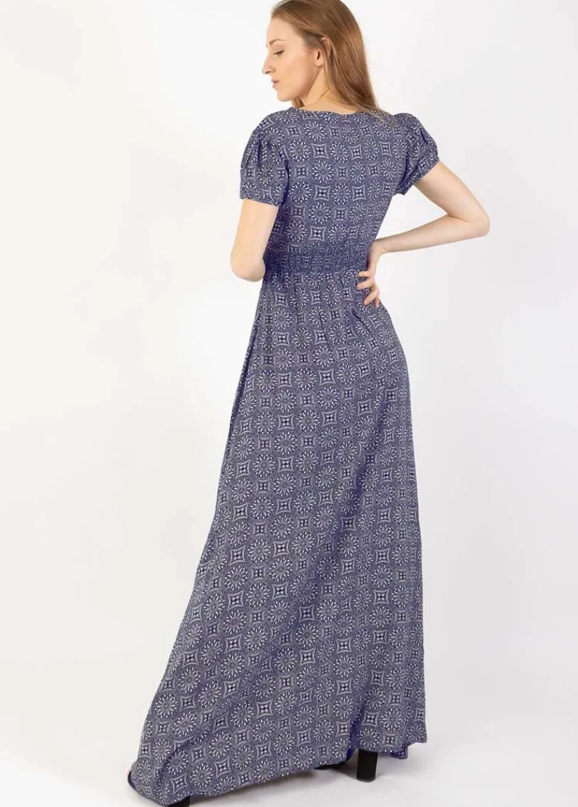 Best Coton Du Monde Robe longue fluide MARBELLA imprimé ethnique 32 Marine