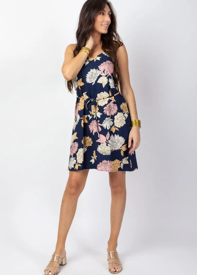 Best Sale Coton Du Monde Robe courte fluide ceinturée LENA fleurie bleu Blossom